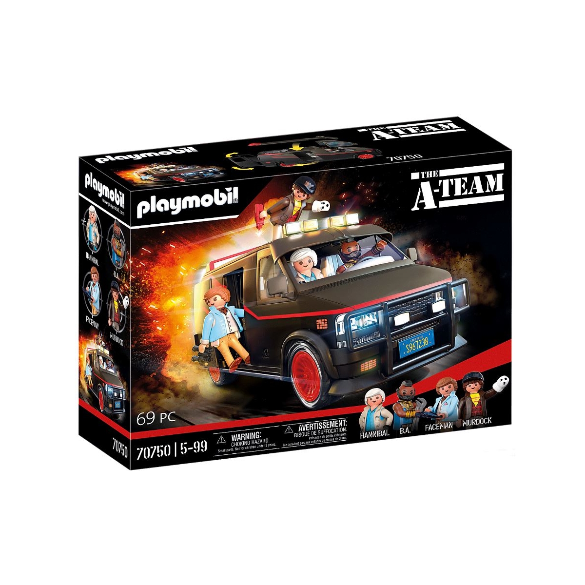 El Equipo A son cuatro ex soldados de élite en una misión inusual. Enviados a prisión por un tribunal militar por un crimen que no cometieron, se escaparon y ahora ayudan a otros que lo necesitan. Si tienes un problema, si nadie más puede ayudarte, y si puedes encontrarlos, puedes contratar al Equipo A. Además de Hannibal, B.A., Face y Murdock, el quinto miembro del equipo es, sin duda, la furgoneta del Equipo A. Con su amplio equipamiento interior con monitor, máquina de soldar, tableros de operaciones, armario y pared perforada para diversos accesorios, la furgoneta está bien equipada para cualquier operación especial. Por supuesto, todos los miembros del equipo encuentran espacio dentro de la furgoneta. El techo se puede quitar para facilitar el juego. Al igual que el original, la furgoneta del Equipo A de PLAYMOBIL también tiene la icónica pintura en tres colores, un parasol extendido y llantas rojas. Una atracción no sólo para los coleccionistas de coches de la película y los fans del Equipo A, sino también para los fans de PLAYMOBIL. El set incluye a Hannibal, B.A., Face y Murdock, así como una furgoneta con espacio para cinco figuras. La puerta lateral y el portón trasero de la furgoneta se pueden abrir.