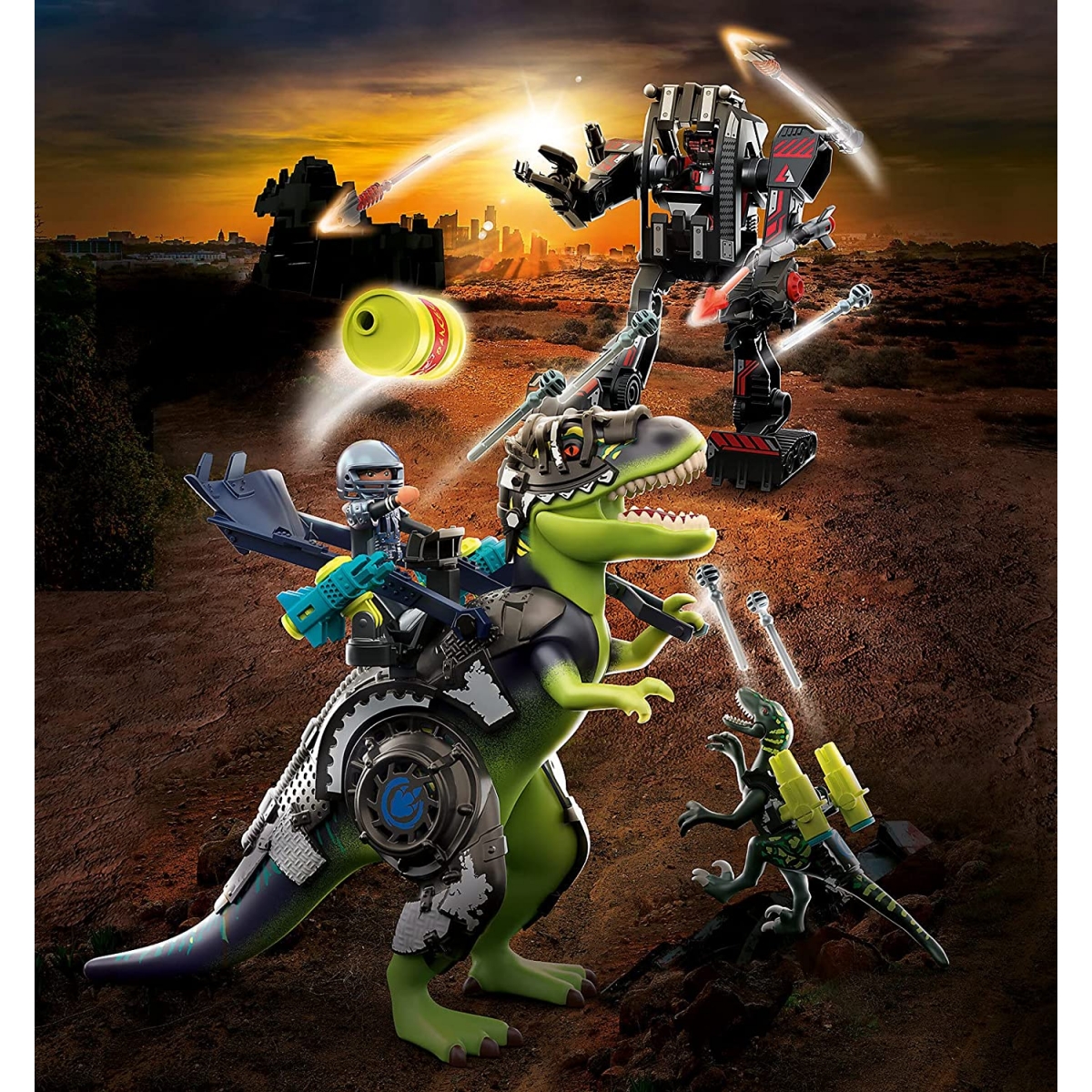 Atención: ¡el T-Rex está atacando! ¿El T-Rex? Oh no, es el robot de combate hipermoderno de la Corporación Comet y quien lo controla no tiene nada bueno. ¡La máquina de combate robot está en curso de destrucción! ¿Quién va a detenerlo? De repente, el intrépido Ian bloquea el camino de la máquina, y no está solo. Ian está sentado a lomos de un auténtico T-Rex con una fuerte armadura protectora de titanio, equipado con cañones y una catapulta. Junto con el dinosaurio y el equipo de combate superavanzado, los dos se enfrentan valientemente a la máquina. ¡Comienza una batalla de gigantes!