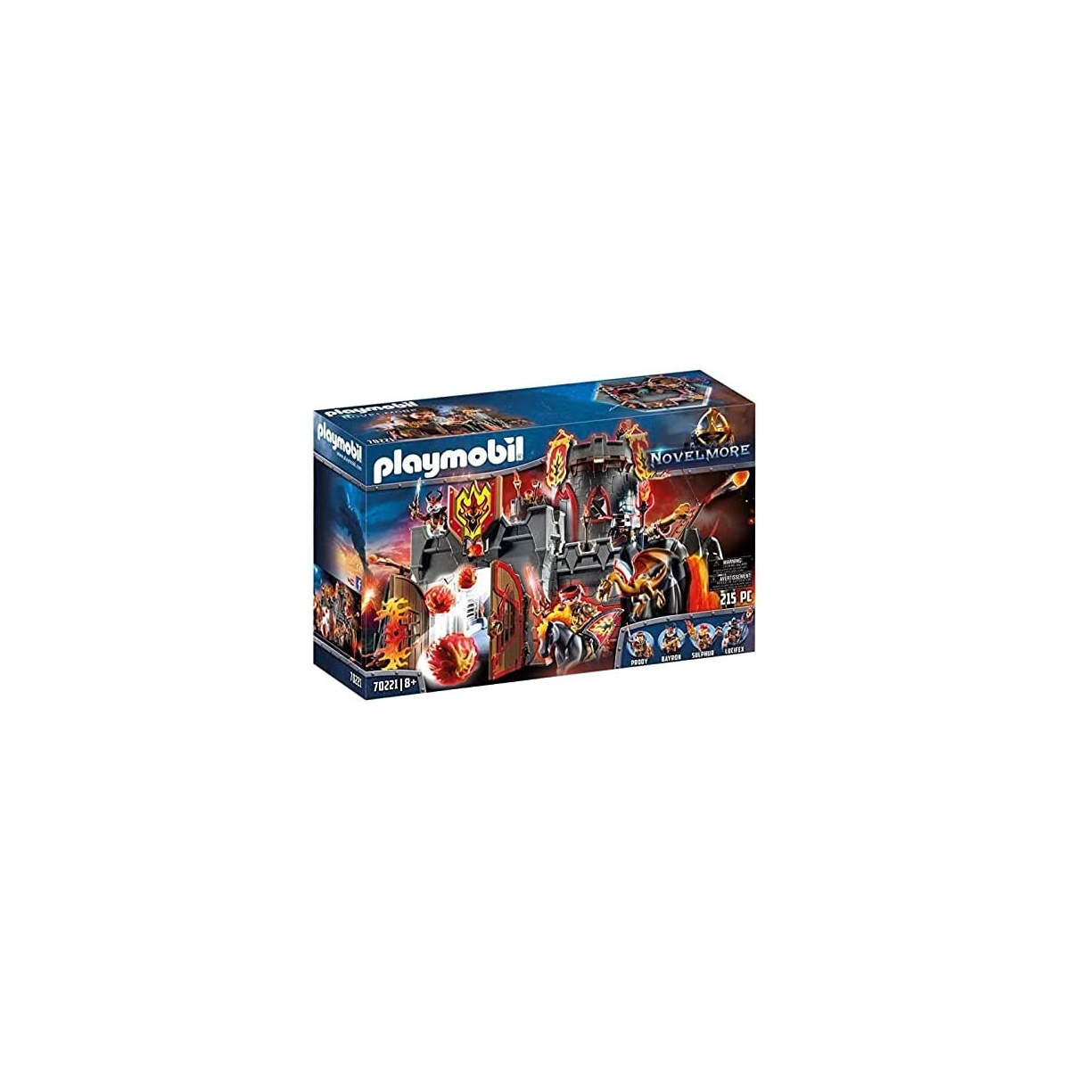 Con puerta, cañones de fuego, caída de bolas de fuego y jaula de dragones. Entrada adicional y mazmorra localizadas debajo de la torre. Incluye 4 figuras. Medidas: 60,5 x 55,5 x 39 cm (LxPxA).
