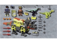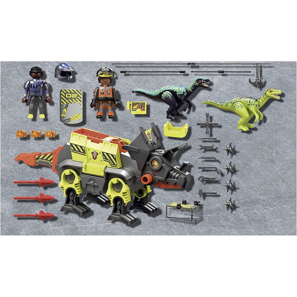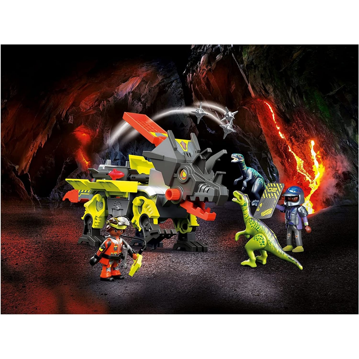 Lucha contra el enemigo con el Robo-Dino. Con este robot, los villanos de Comet Corp. intentan superar el poder natural de los dinosaurios usando tecnología pura. La Máquina de Combate con forma de triceratops funciona con cristales de energía que se almacenan en un compartimento secreto dentro de la máquina. Una vez encendido, el Robo-Dino usa los cañones y la catapulta que dispara para defender al grupo minero. El juego incluye al miembro del equipo Dino Rise, Jaden, un minero, dos velocirraptores, un Robo-Dino, dos cañones con proyectiles, cristales de energía y otros accesorios.