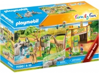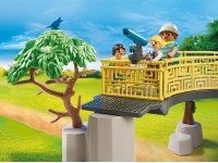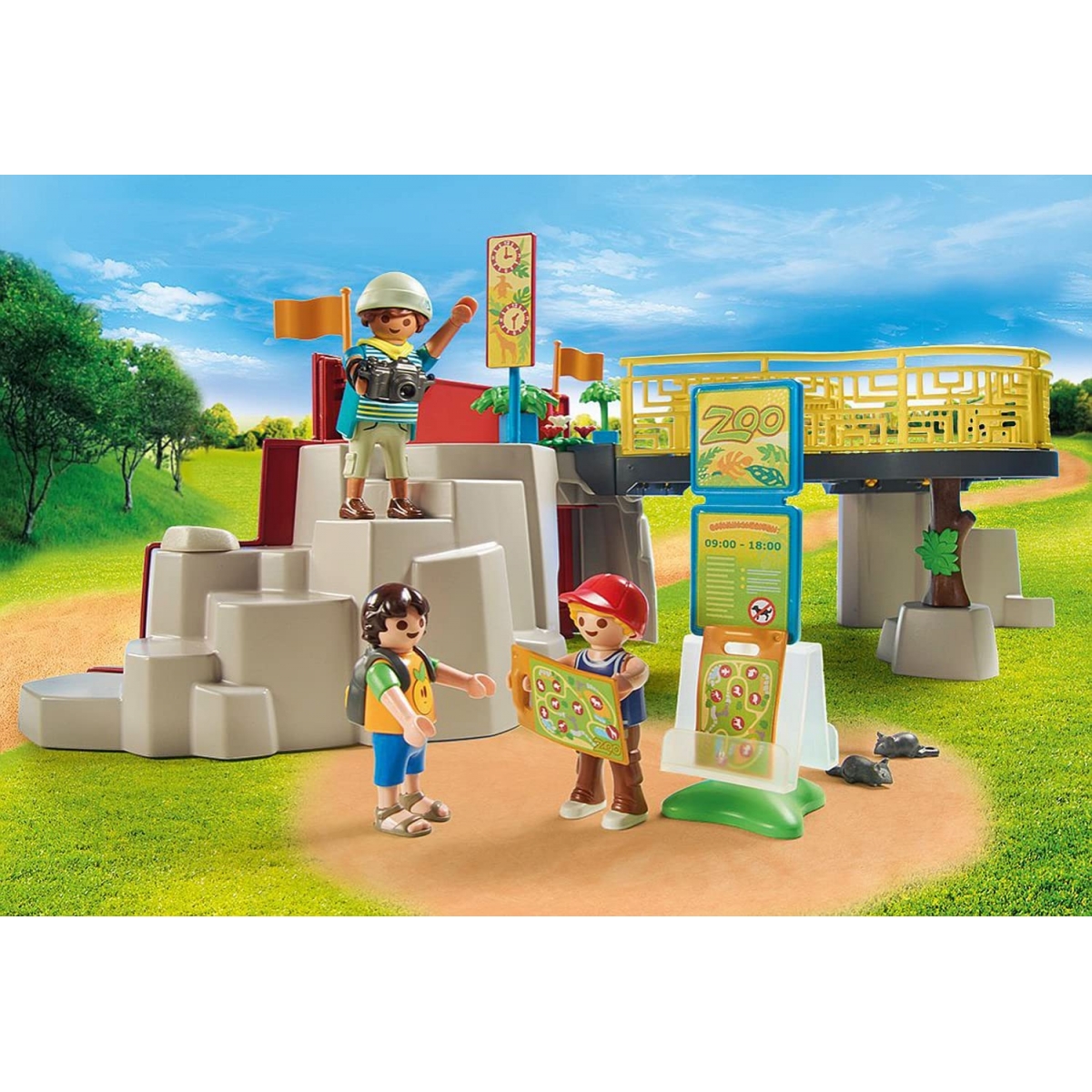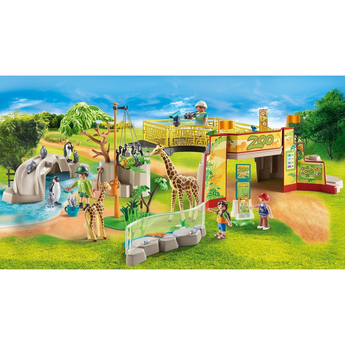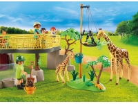 Entra en el alegre zoo de aventuras de PLAYMOBIL. Aquí se pueden observar de cerca animales exóticos. La pasarela sobre el portal de entrada conduce a los visitantes a su recorrido de observación. Desde esta posición elevada, los pingüinos y las jirafas se pueden ver tranquilamente en sus amplios recintos. Es la hora de alimentar a los animales y el cuidador del zoo proporciona a las jirafas comida y agua fresca. Luego coge la pala y limpia el recinto. Mientras tanto, los pingüinos se deslizan alegremente por el tobogán de hielo hacia el agua. Un set de juego diseñado con mucho cariño para los pequeños amigos de los animales. El set incluye dos figuras PLAYMOBIL, dos figuras infantiles, una jirafa con su cría, dos pingüinos, cuatro crías de pingüino, dos ratones, una lagartija, un pájaro, una puerta de entrada con camino de observación, varios elementos de delimitación y otros estupendos extras. Con la ayuda de los elementos de delimitación incluidos, los recintos de los animales se pueden diseñar de forma flexible.