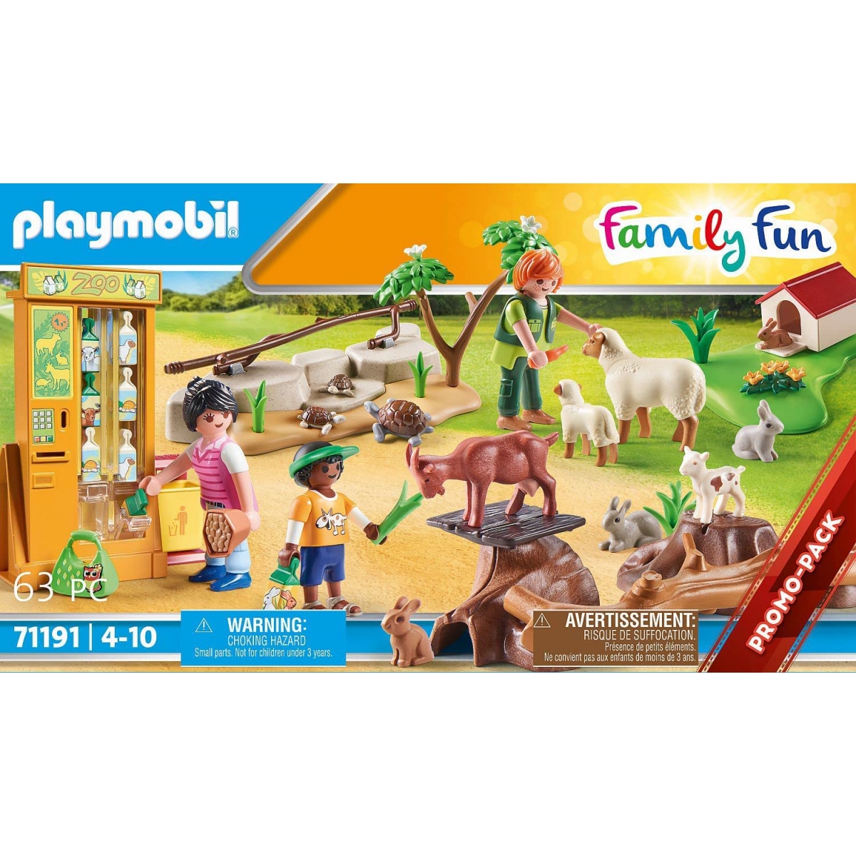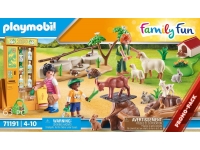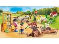 En el zoo de mascotas PLAYMOBIL, los pequeños amantes de los animales pueden conocer a sus animales favoritos. En primer lugar, los visitantes compran comida en el dispensador de alimentos para animales, y luego se dirigen al recinto para alimentar y acariciar a los animales. Las cabras y las ovejas ya están contentas y saltan con entusiasmo. Por supuesto, no se olvidan de las tortugas y los conejos. Un set de juego diseñado con cariño para los amantes de los animales. El set incluye tres figuras PLAYMOBIL, una cabra con cabrito, una oveja con cordero, dos conejos con bebés, una tortuga, un dispensador de comida, ocho bolsas de pienso y muchos otros estupendos extras. El dispensador de comida es funcional y siempre se puede rellenar con comida para animales.