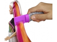 ¡Barbie Mechas arcoíris despierta la imaginación de las niñas para crear infinitos peinados e historias sobre ellos! Barbie esconde mechas de color arcoíris en su pelo extralargo de 19cm que puedes peinar para sorprender a todos. Además, incluye un gel con purpurina, un peine y accesorios para looks todavía más únicos.