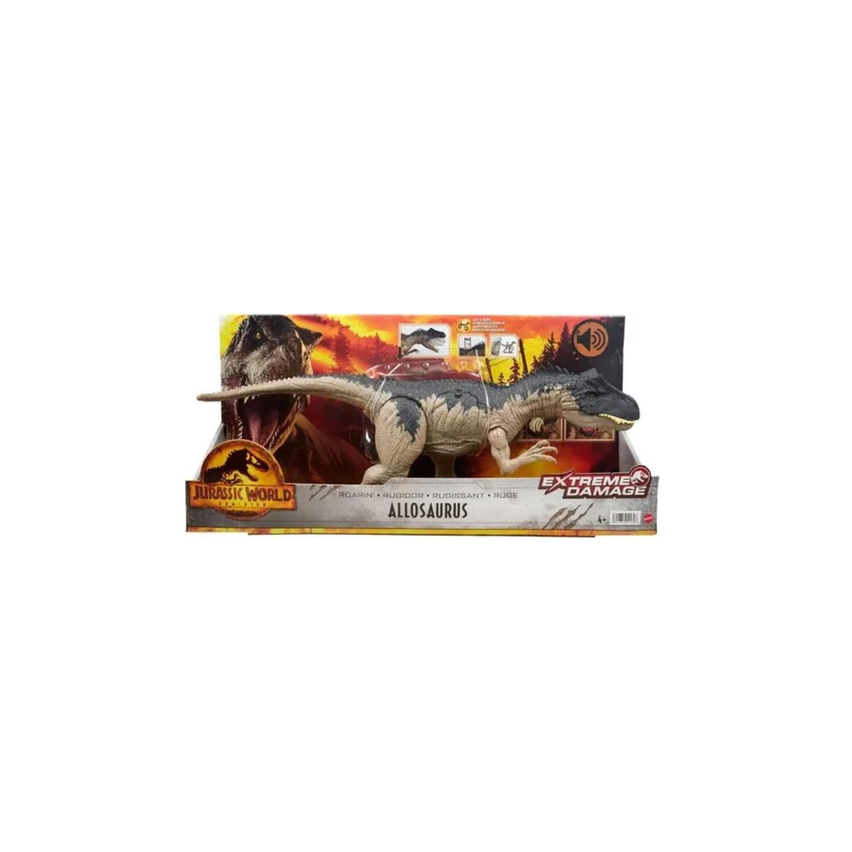 Jurassic World - Allosaurus, un dinosaurio que ruge desesperado por los daños sufridos en la batalla.