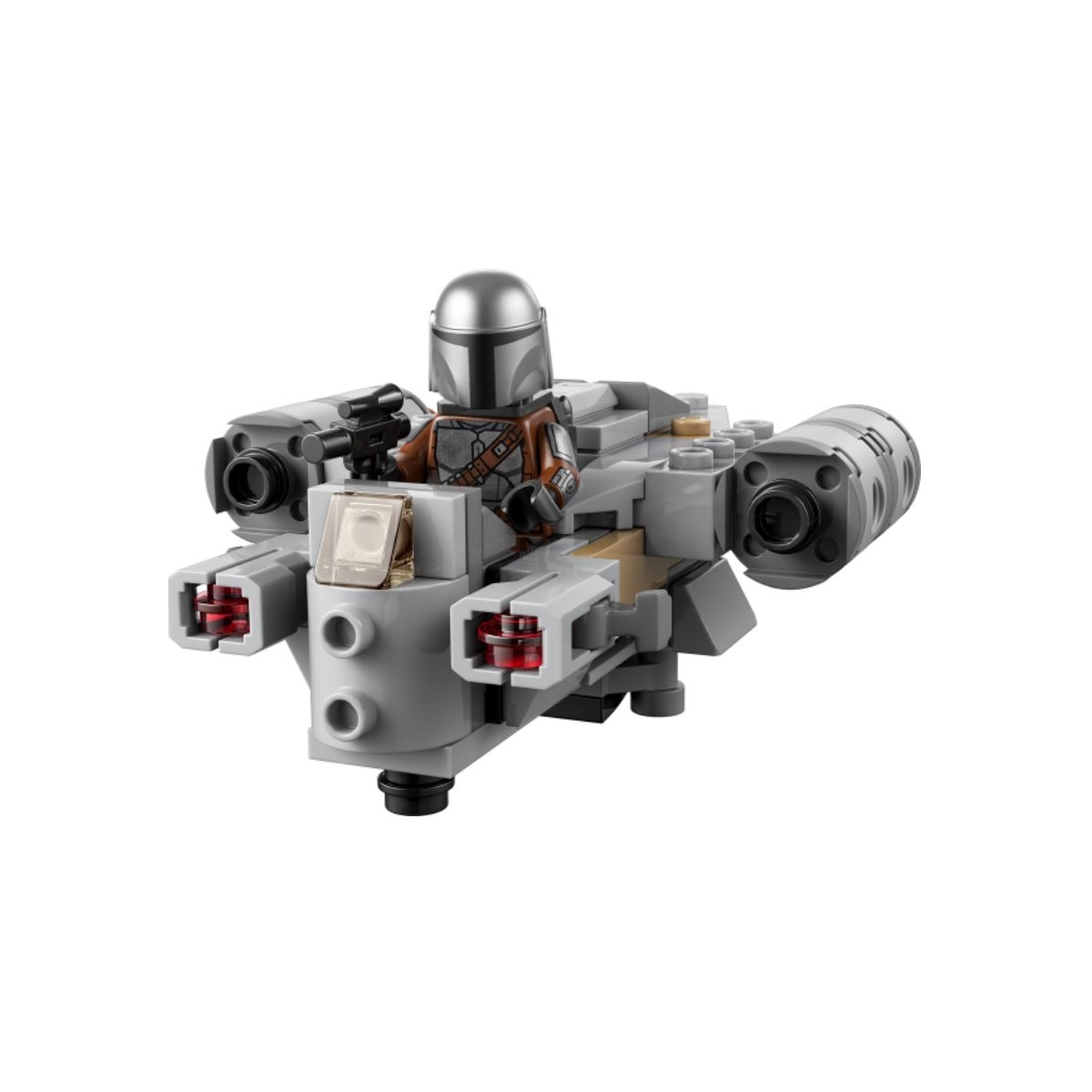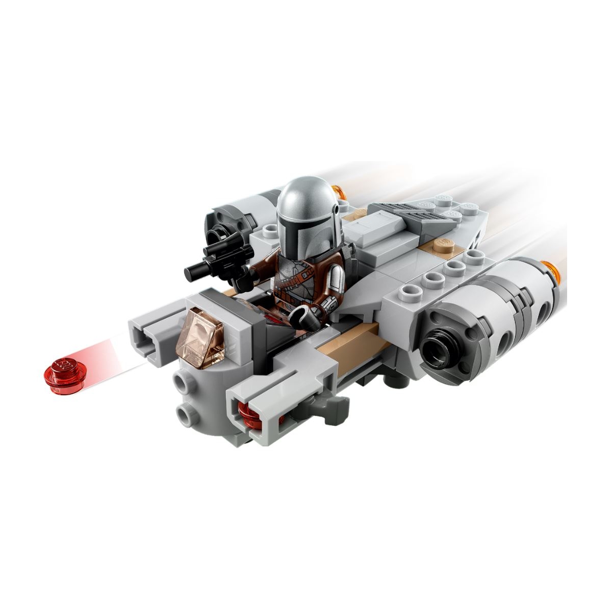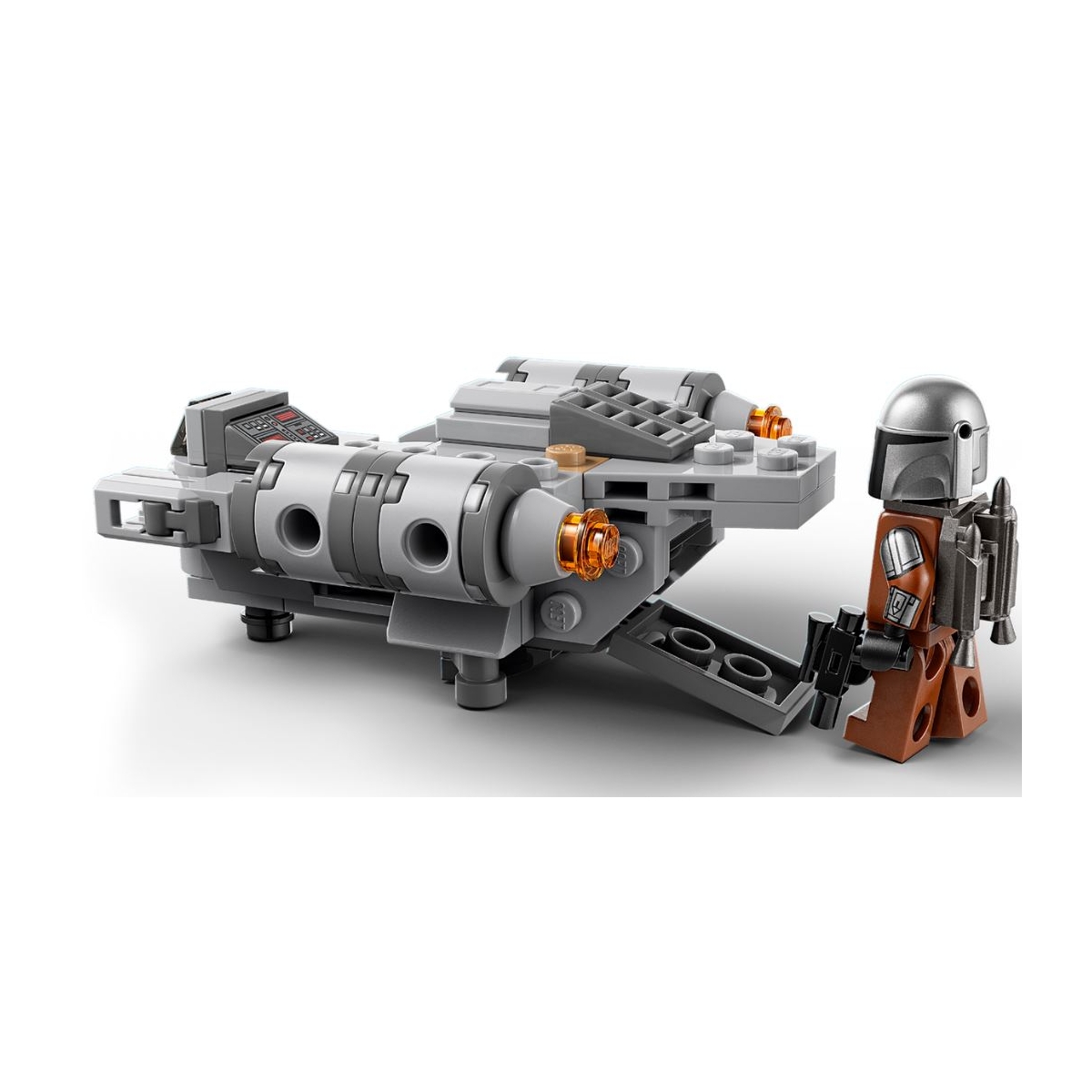 - Minifigura LEGO® del Mandaloriano: La minifigura LEGO del Mandaloriano, decorada con el traje que lleva el personaje en la temporada 2 de Star Wars: The Mandalorian, trae una pistola bláster y una mochila propulsora que promueven el juego creativo
