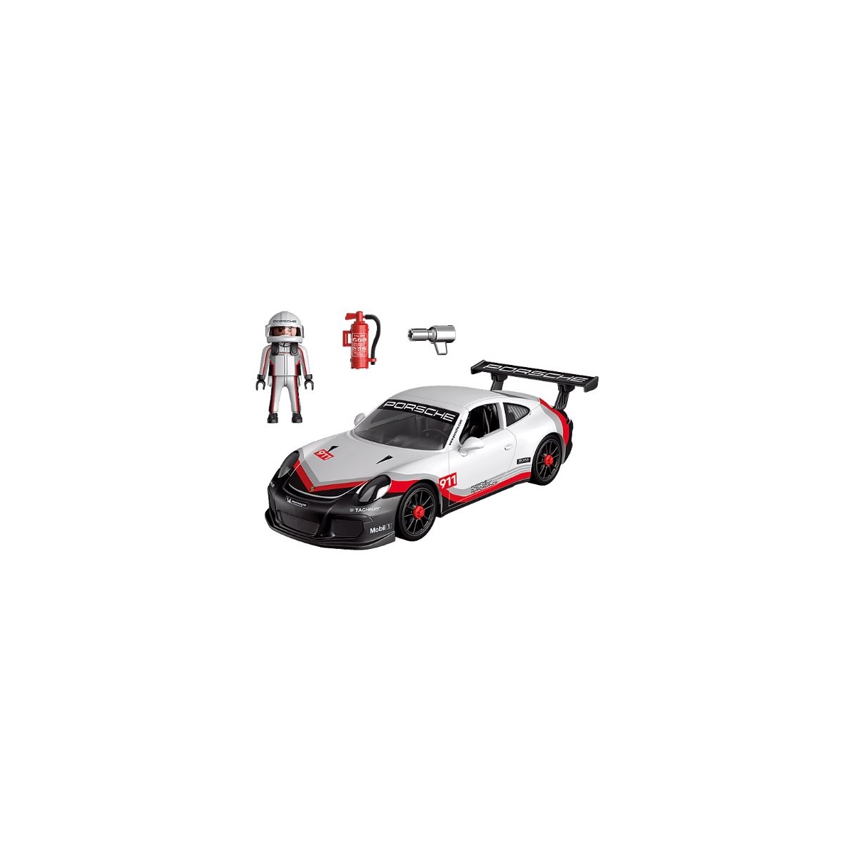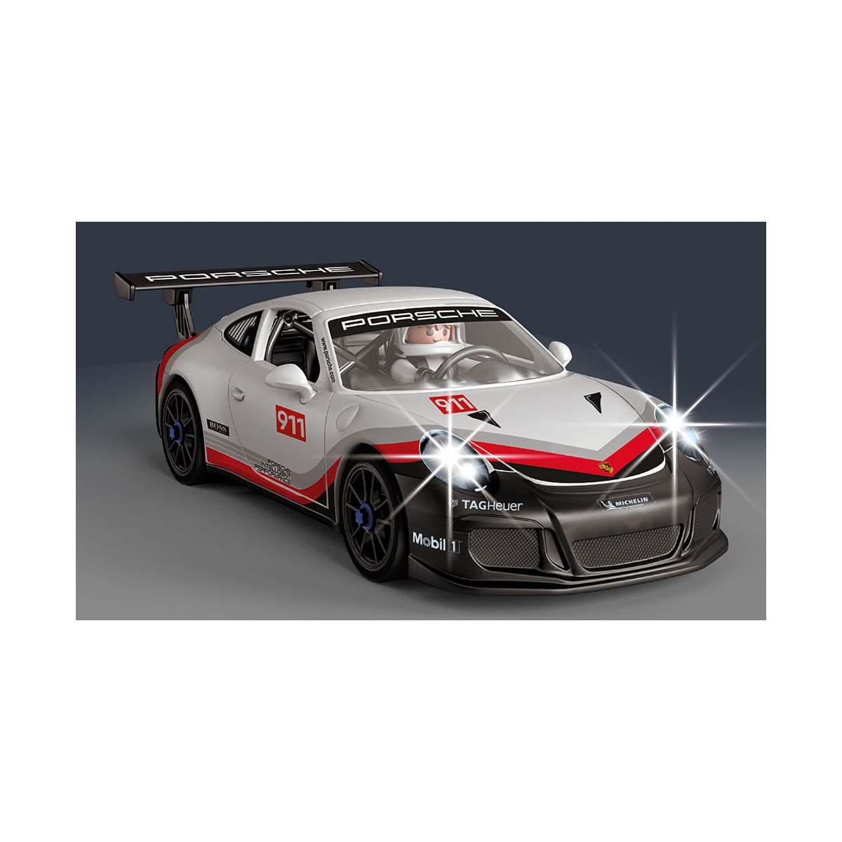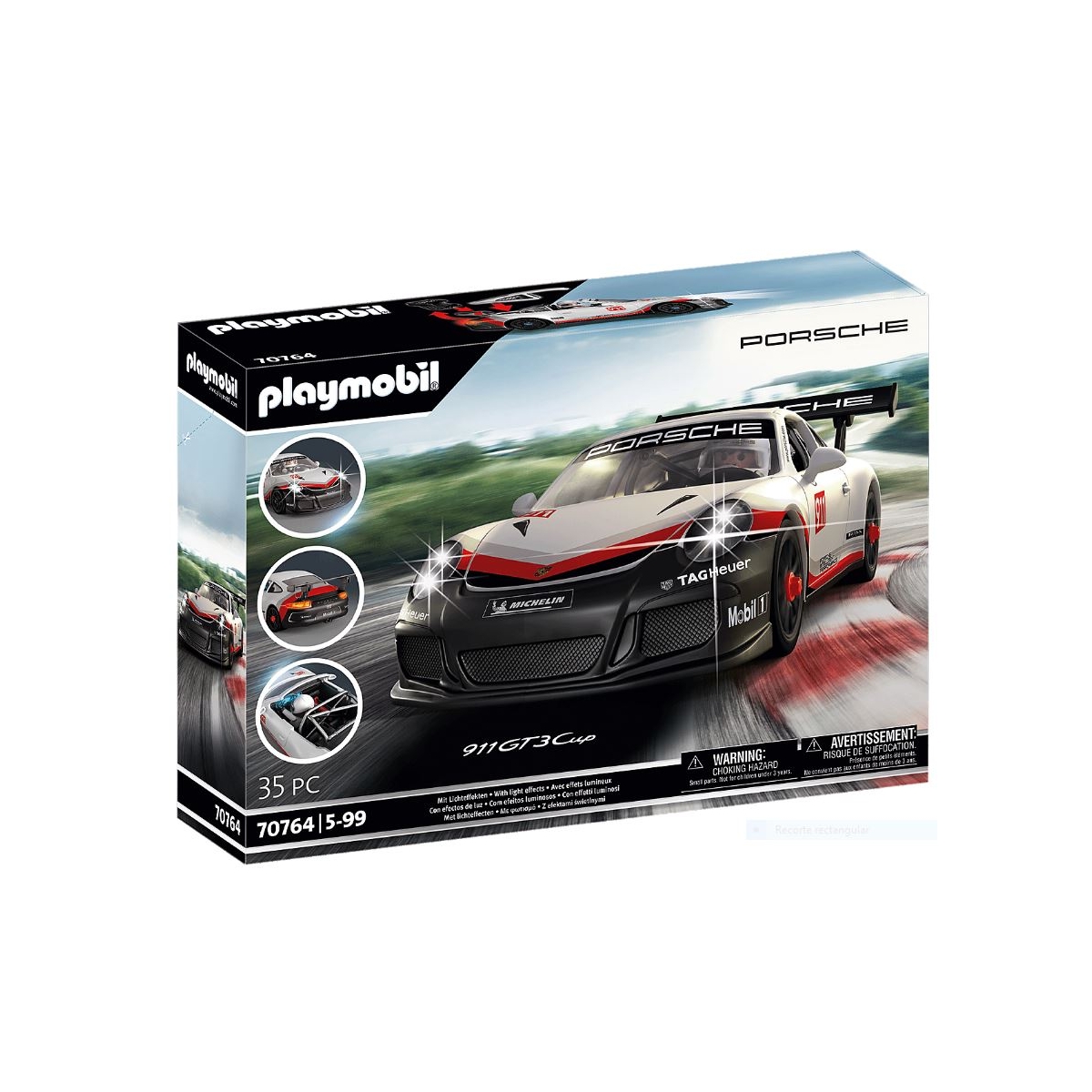 Atención a los aficionados a los coches deportivos: ¡El Porsche 911 GT3 Cup convierte la habitación de los niños y niñas en un circuito de carreras! Su diseño único, los colores típicos del automovilismo de Porsche y los detalles aerodinámicos lo hacen inconfundible. Al igual que el original, el modelo Porsche 911 GT3 Cup de PLAYMOBIL tiene un alerón trasero ajustable en altura. El techo es desmontable y la iluminación delantera, trasera e interior lleva el diseño de luces a una nueva dimensión. Con este potente coche deportivo GT, los entusiastas de los deportes de motor pueden ahora comenzar su propia serie de carreras en casa. El set de juego incluye un Porsche 911 GT3 Cup, una figura PLAYMOBIL con un traje de carreras Porsche y casco, un extintor, una llave de impacto de aire comprimido y muchos otros potentes extras para divertirse en las carreras. Se necesitan tres pilas de 1,5 V para el módulo de luz (no incluidas).