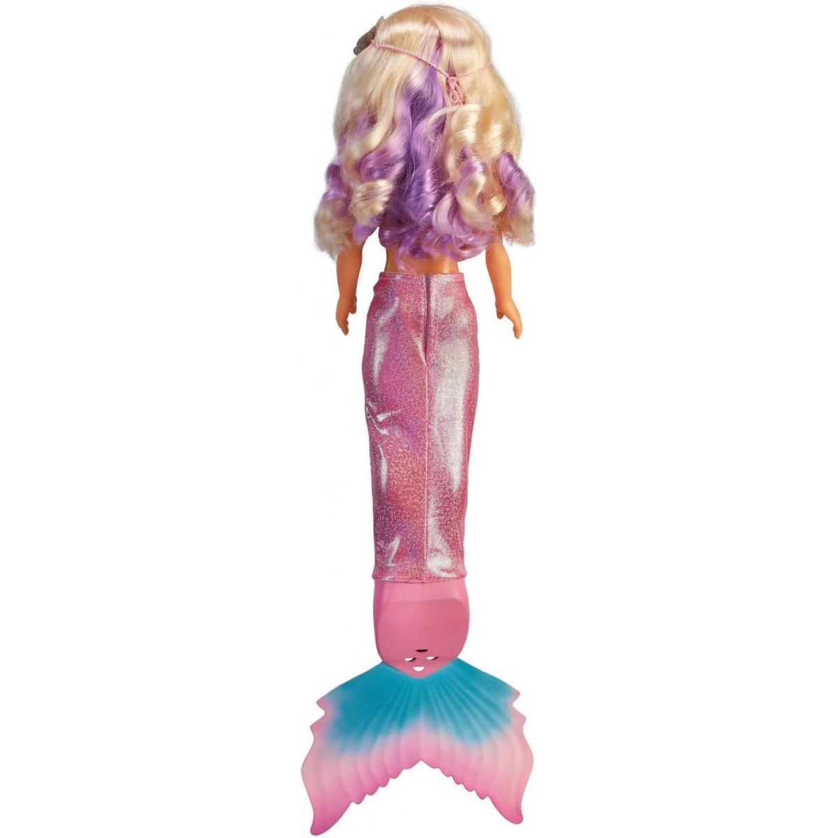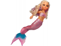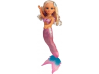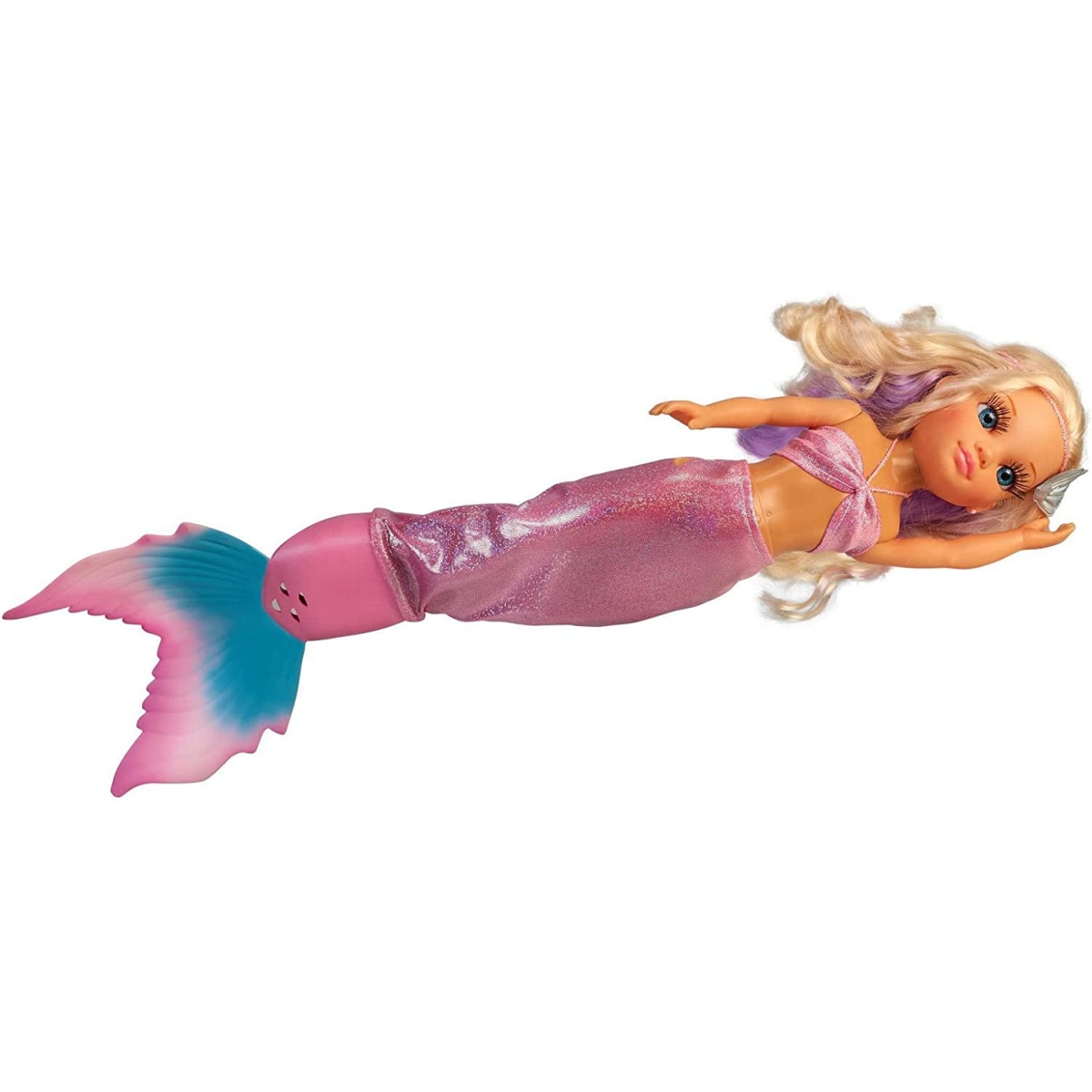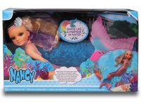 Nancy se lo pasa en grande en la Escuela de Sirenas, donde aprende a nadar como una sirena de verdad junto a sus amigas. Nancy lleva un top rosa a conjunto con su bonita cola brillante, y una diadema con una concha de adorno, para destacar su largo pelo rubio con mechas moradas. Al introducir a Nancy en el agua, la muñeca comenzará a desplazarse haciendo movimiento con la cola, como hacen las sirenas. Además podrás jugar con ella también fuera del agua, ya que su cola flexible le permite mantenerse de pie.