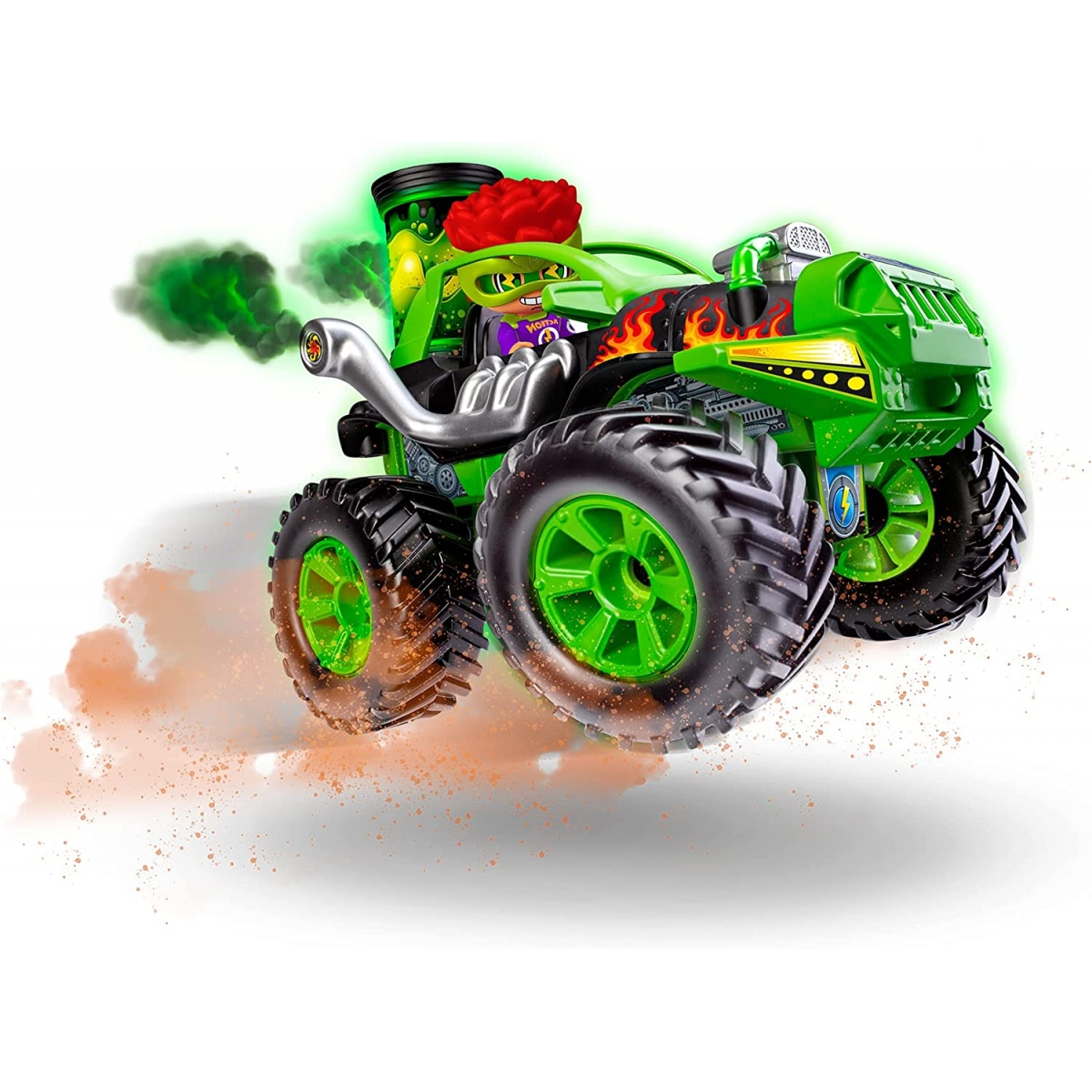 No hay límites condiciendo el coche Big Foot de PInypon Action. Las ruedas mega grandes y sus amortiguadores vencen a cualquier obstáculo en la carrera o en la carretera. ¡Es invencible! Con un depósito transparente de gasolina que se puede quitar y tubo de escape super cool. Incluye figura de Pinypon Action piloto de carreras.