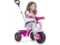 Triciclo con estructura metálica para mayor resistencia, cinturón de seguridad, asa regulable, embrague manual para bloqueo de pedales y volquete. •Tiene 2 posiciones: sillita de empuje y triciclo con pedales. •Adecuado para niño y niña desde los 12 meses hasta los 3 años. •Peso: 3,86 Kg. Medidas del producto montado: 97 (Largo) x 48 (Ancho) x 96 (Altura) cm.