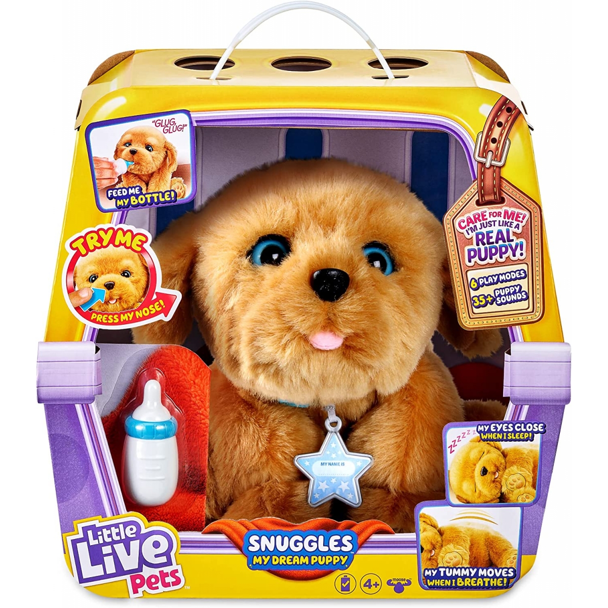 El perrito de Little Live Pets se mueve, necesita cuidados y mimos como dormir, comer y jugar; Y además abre y cierra los ojitos.