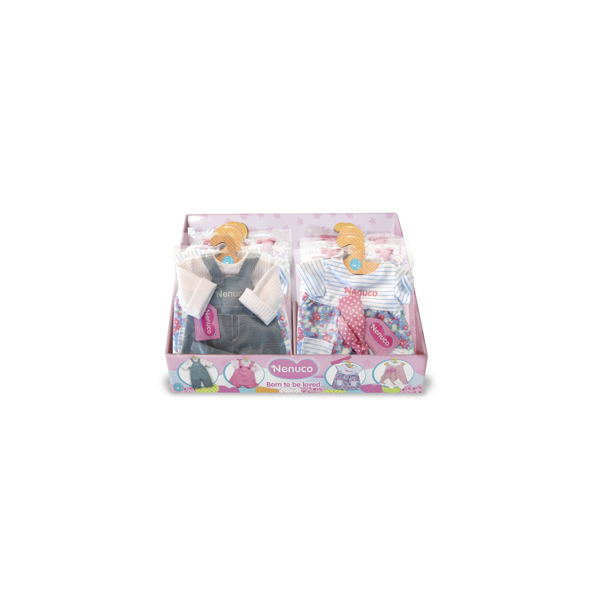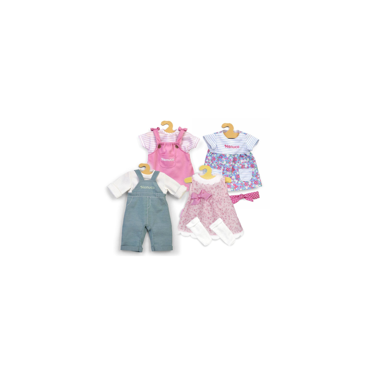 Surtido de seis conjuntos de ropita con percha, cada uno con tres piezas para vestir a Nenuco. Valido para muñecos tamaño 35 cm. Edad recomendada: +2 años.