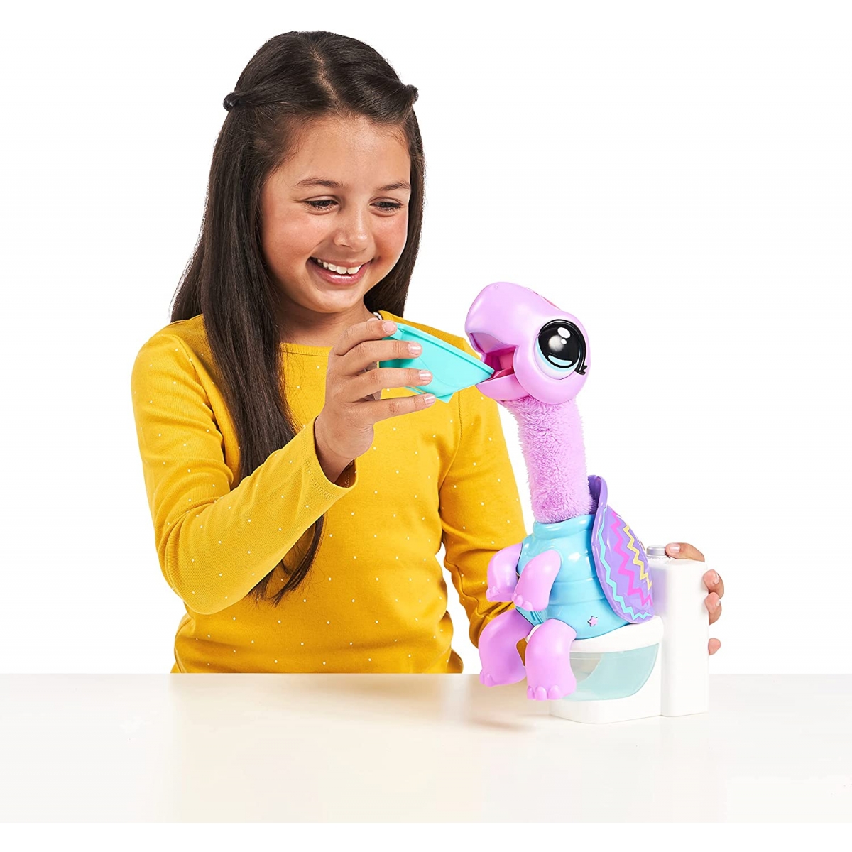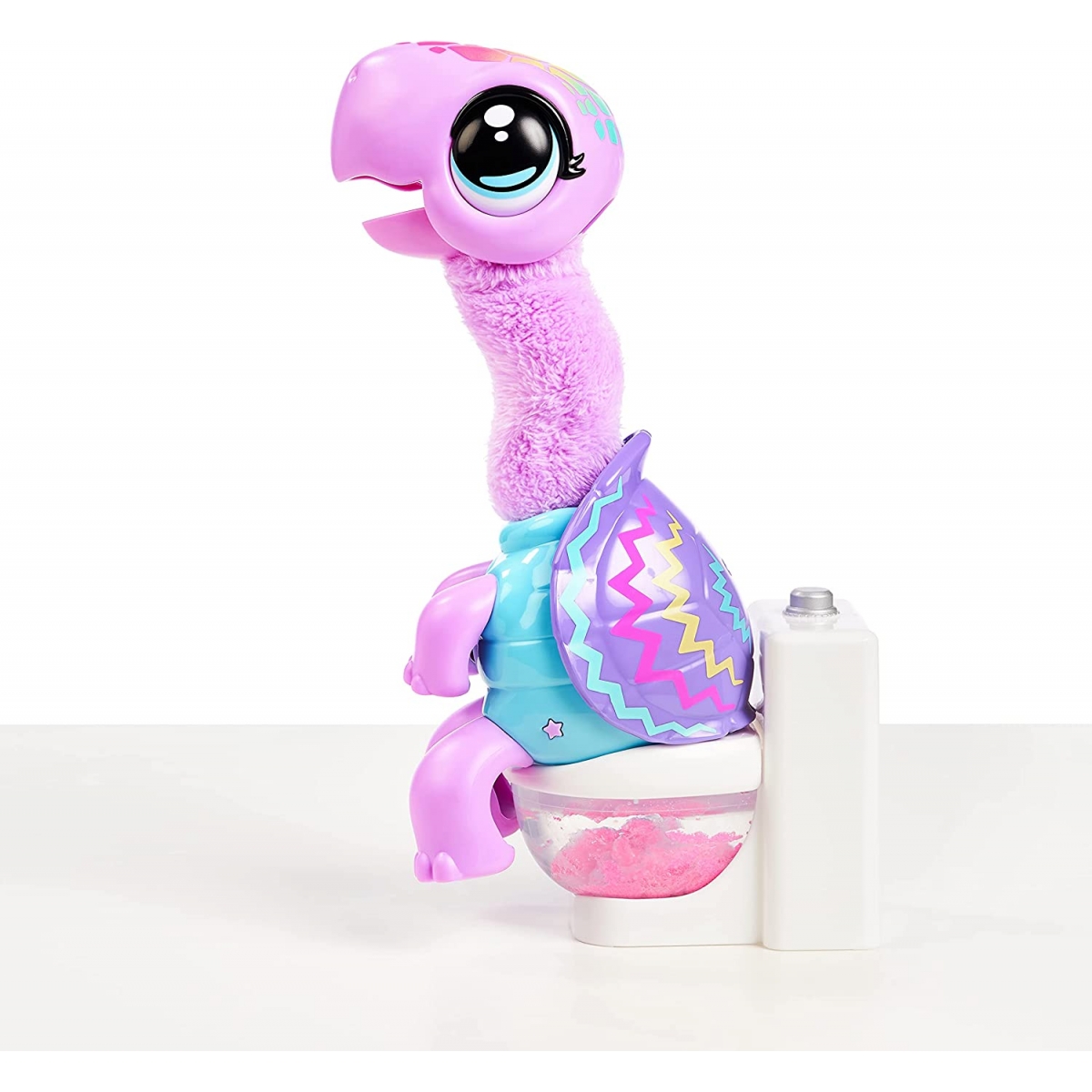 Divertida canción de inodoro: alimenta a Shelbert su comida de tortuga y luego escucha mientras mastica y mira cómo su cuello largo se mueve. Cuando canta "Uh Oh! ¡Tienes que ir! ", sabrás que es hora de colocarlo en el inodoro y ver cómo se caca.