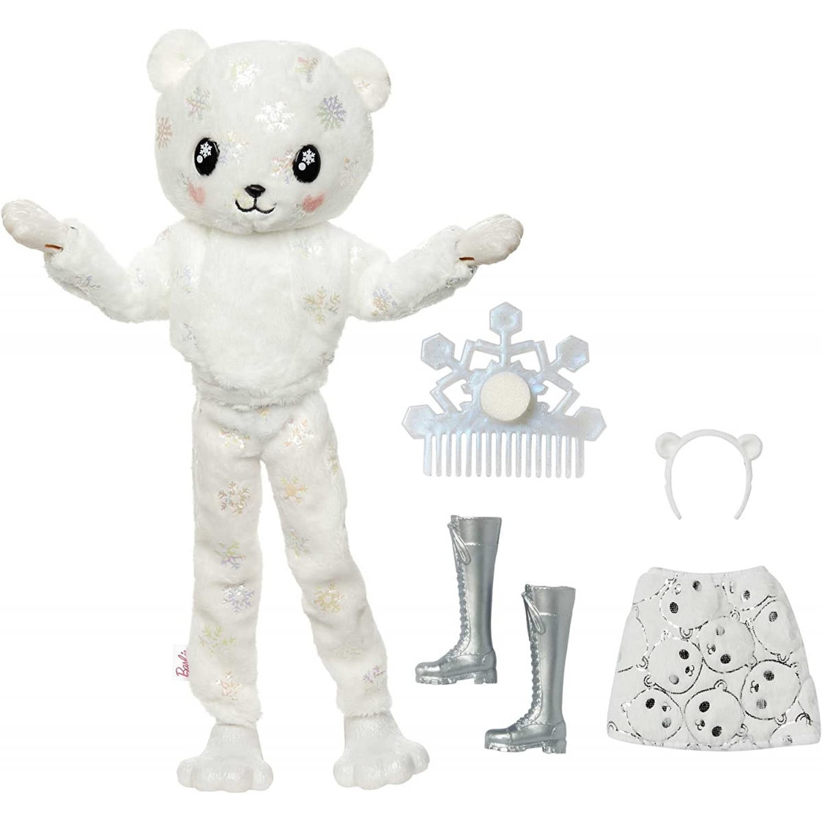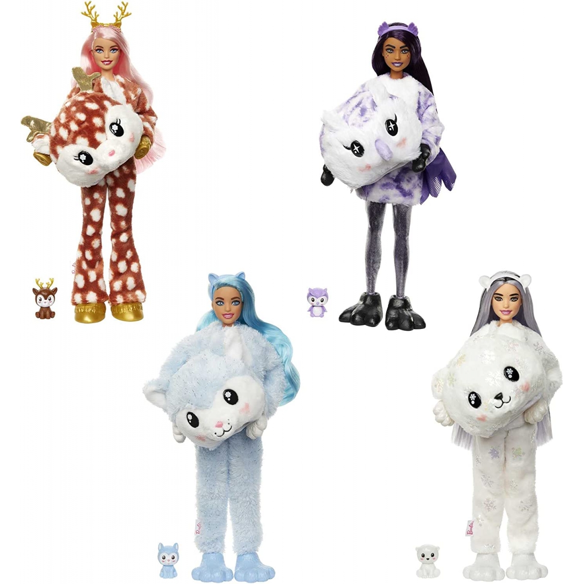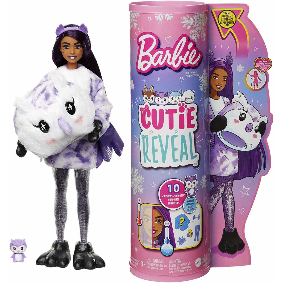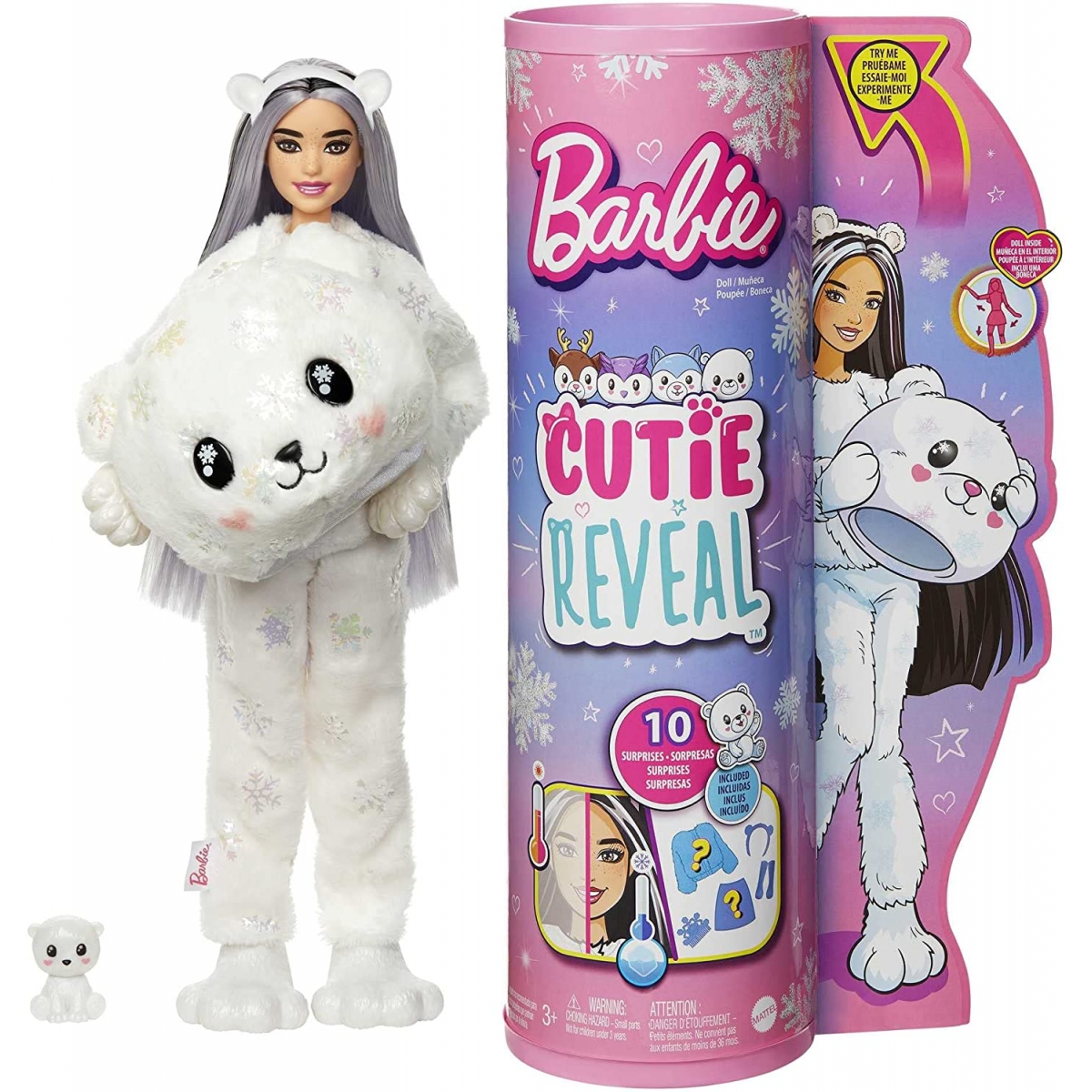 Gracias a las 10 sorpresas incluidas en un único paquete, abrir la caja de las muñecas Barbie Cutie Reveal serie Snowflake Sparkle es una experiencia superguay. Descubre en su interior suaves animales de peluche invernales, prendas de ropa y sorpresas, y disfruta con las divertidas transformaciones.
