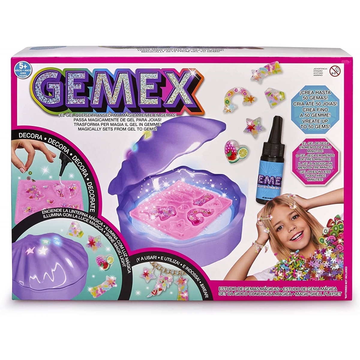 El Estudio de Gemas de Gemex es un set mágico que convierte el gel en hasta 50 preciosas gemas diferentes para crear pulseras, clips para el pelo, pendientes y mucho más.