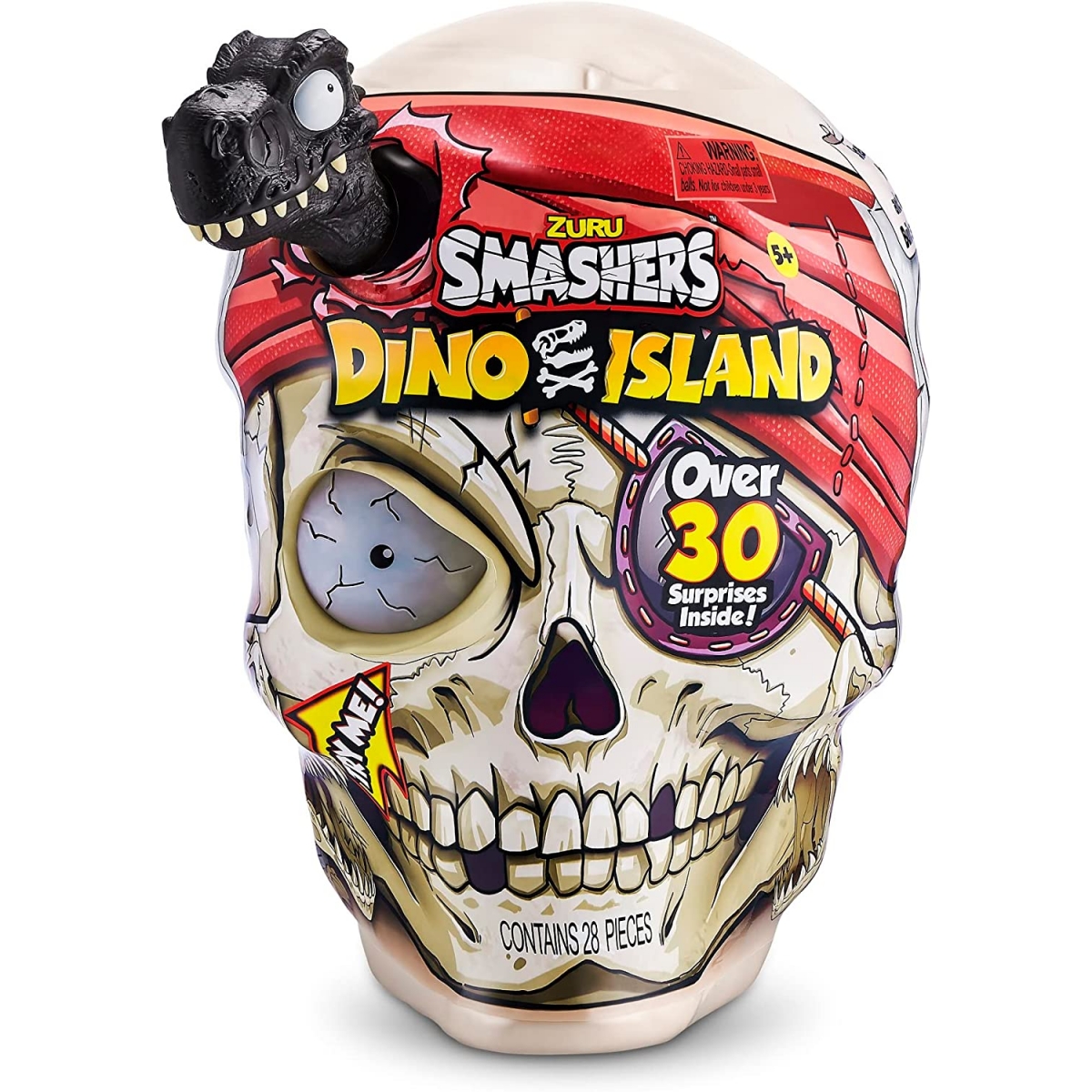 Ábrete camino hacia una épica aventura prehistórica con Dino Island Calavera gigante. Haz añicos el cráneo para descubrir las 30 sorpresas ocultas dentro de esta calavera llena de acción. Busca las piezas para formar el dinosaurio, el slime, el pirata y 5 épicos minihuevos que contienen nuevos minipersonajes. Construye completamente tu dino antes de ponerle el ojo gigante dentro de la boca para escucharlo rugir. Hay dos bestias prehistóricas y más de 20 minipersonajes para aplastar y coleccionar. ¿Encontrarás al poderoso T-Rex o al prehistórico tiburón Megalodón? ¿A qué esperas? ¡Ponte a aplastar para descubrir tu nuevo y peligroso Dino Island!