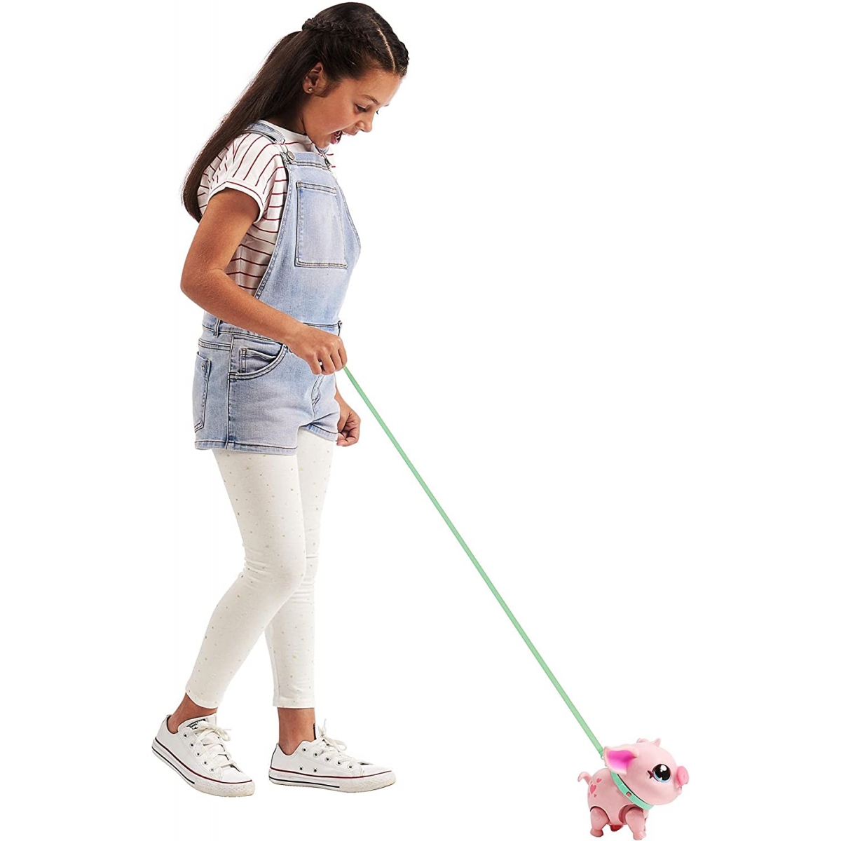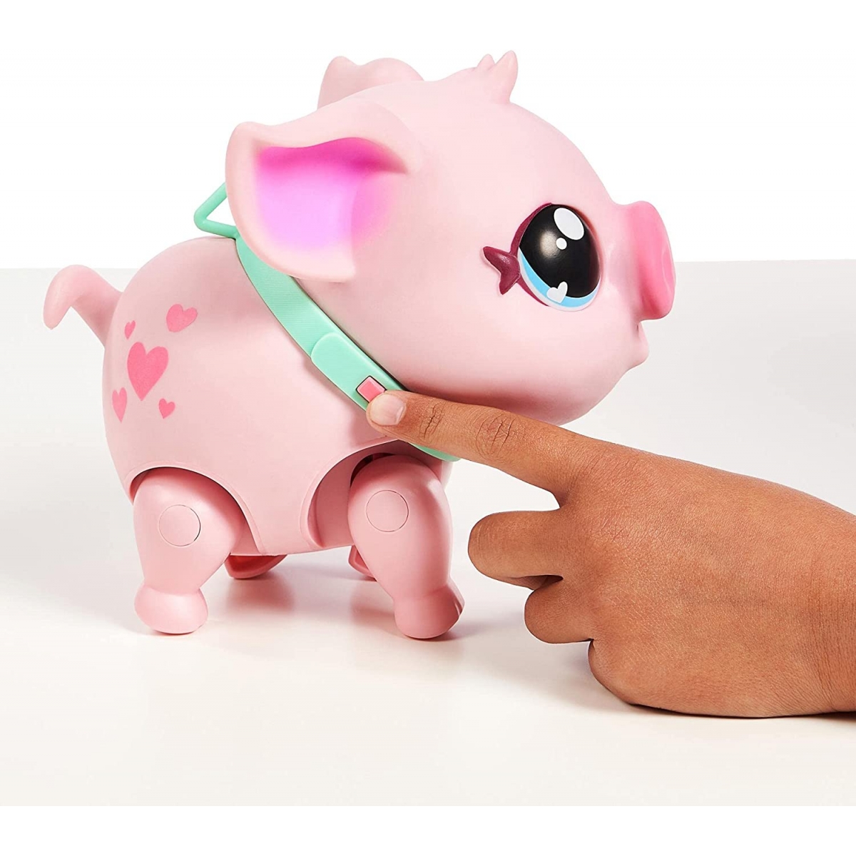 Más de 25 sonidos y reacciones divertidas, descúbrelas todas jugando con él; puedes darle de comer, acariciarle el hocico, pasear y bailar; Al tocarle hace sonidos de cerdito. ¡oinc, oinc!