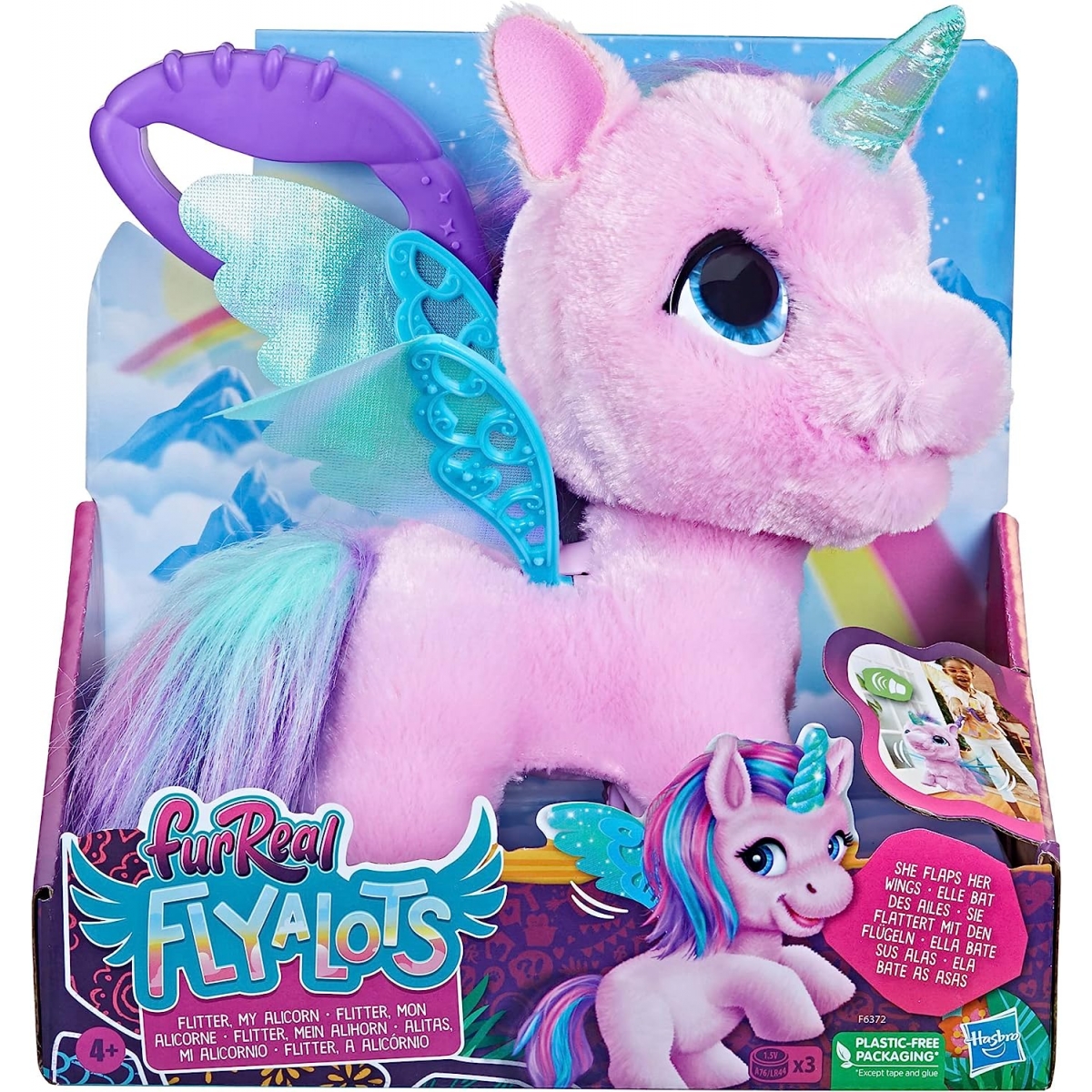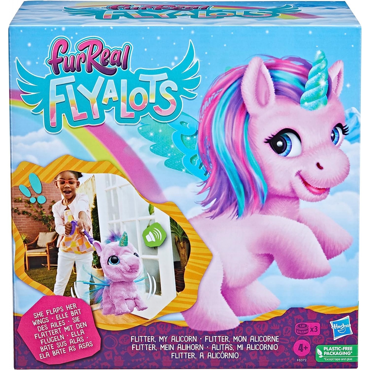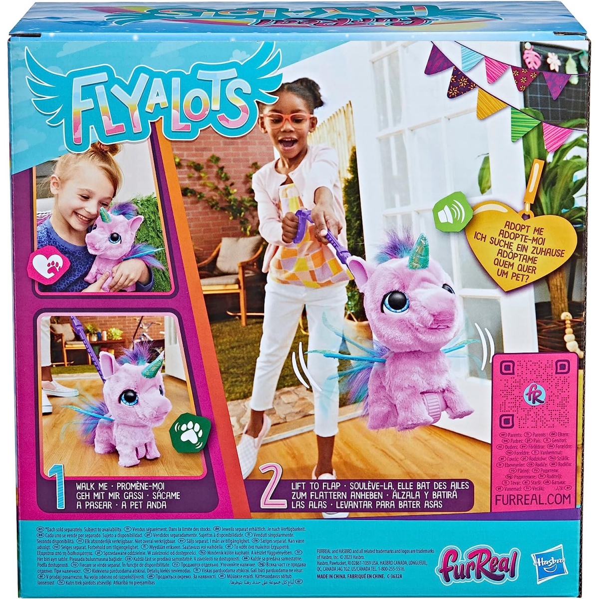 ¡Dale la bienvenida a casa a una fantástica mascota furReal! El juguete interactivo Alitas, mi alicornio es una adorable mascota animatrónica para pasear y cuidar. Este tierno unicornio alado viene con una correa desmontable de dos piezas para pasearla por el suelo. Empújala por la correa, y ella avanzará y batirá las alas. Luego, levanta la correa mientras caminas y sus alas se moverán aún más rápido. También hace sonidos de mascotas y otros sonidos divertidos, lo que hace que la interacción sea mucho más emocionante. Los niños y niñas pueden divertirse con la hoja de actividades mientras cuidan de su mascota de juguete. Cuando se trata de juguetes interactivos de peluche, este alicornio es lo más tierno que puedes encontrar. ¿Damos un paseo por la casa? ¡Suena divertido!
