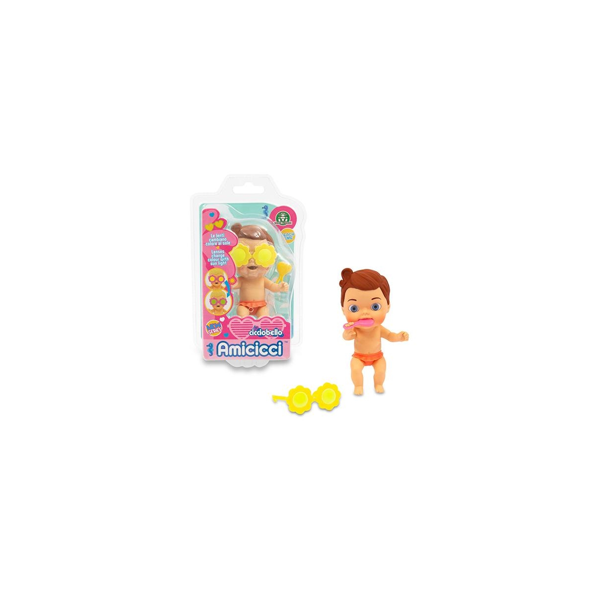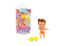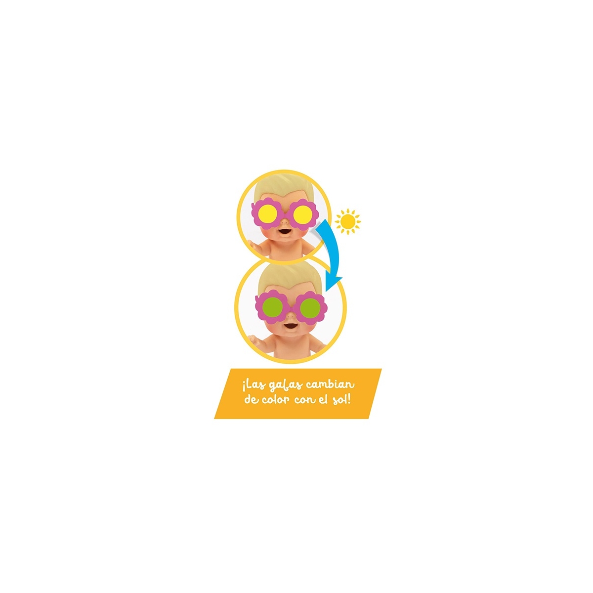 Que la diversión en la playa no pare con los pequeños bebés Amicicci Beach Time. Son muy flexibles y están fabricados de un material blandito. Son casi como un bebé de verdad. Los Amicicci hacen expresiones faciales tiernas y divertidas al presionarle las mejillas. Van vestidos con un bañador de colores extraíble e intercambiable, y unas gafas de sol divertidas en forma de corazón o de flor. Cada muñeco bebé viene con un sonajero para jugar. Hay 5 para coleccionar: Niño bañador rojo, niña bañador rosa, niño bañador azul, niña bañador naranja o niño bañador amarillo. Es un producto surtido. Cuando estés realizando tu pedido, indícanos qué modelo desea recibir. En caso contrario, se mandará modelo aleatorio. Medidas: 11 x 6 x 5 cm. Famosa. Ref.: CC040000. Edad recomendada: +3 años.