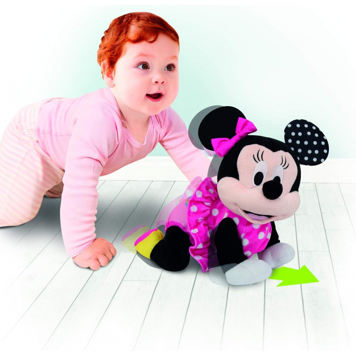 Baby Minnie gatea y al intentar imitarla, ayuda al niño a desarrollar las habilidades motoras.
