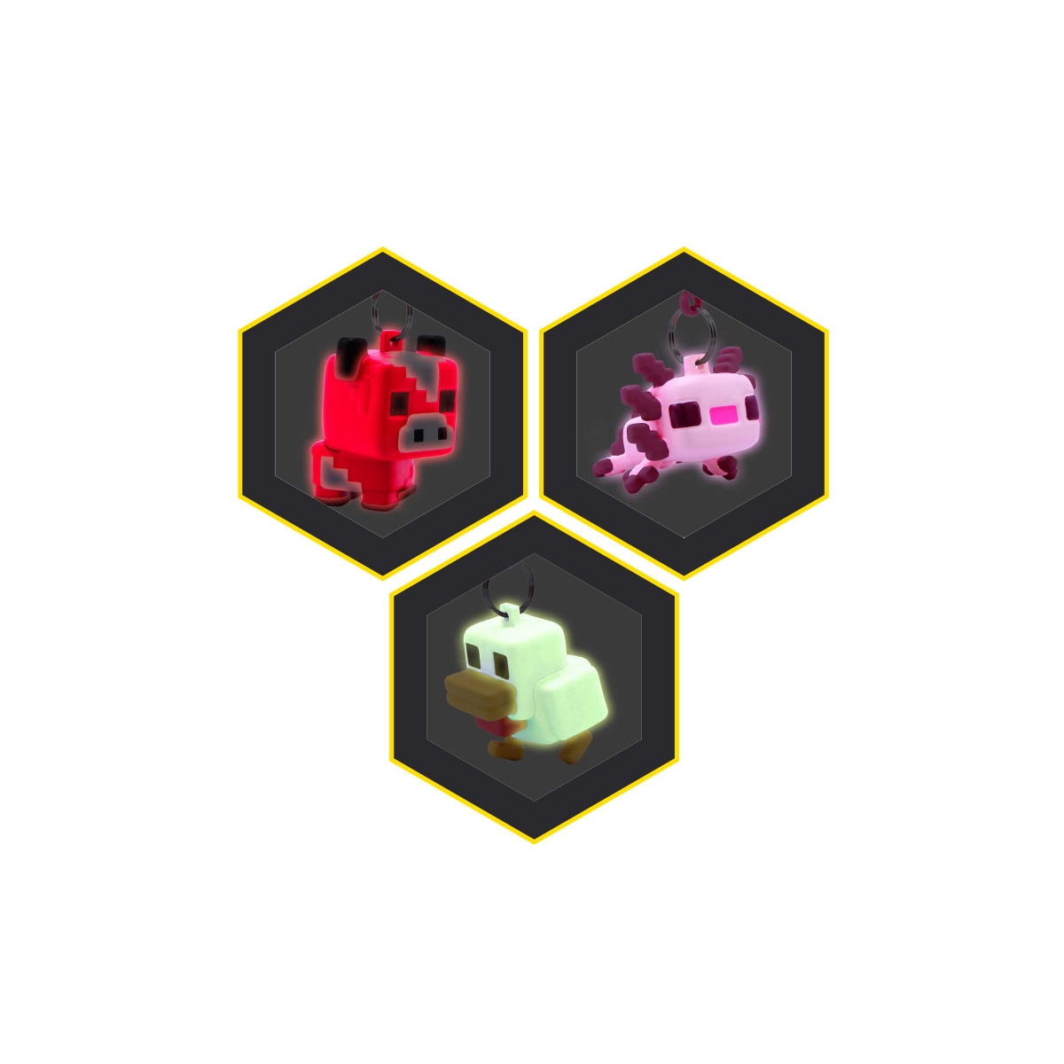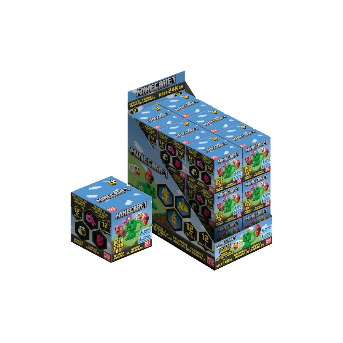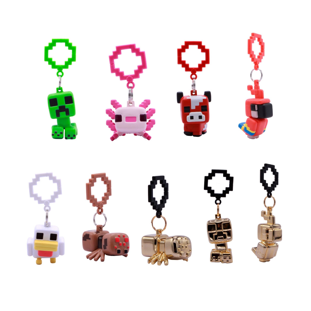 Una colección de 12 llaveros de 6cm de los personajes favoritos de los niños de Minecraft. Dentro de la colección existen algunos llaveros exclusivos. Unos brillas en la oscuridad y otros tienen un acabado dorado.