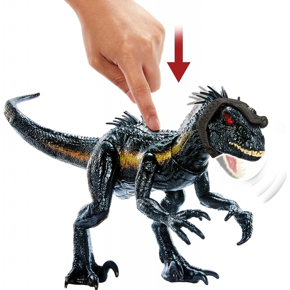 Este único e intimidante dinosaurio indorráptor Rastreo y ataque inspirado en la película de Jurassic World cuenta con 3 funciones de ataque, ¡todas con efectos de luz y sonido! Incluye las enormes garras por las que es conocido este famoso dinosaurio híbrido y su diseño presenta detalles de los colores de la selva con efecto iridiscente. Es una figura llamativa que viene con un casco de rastreo intercambiable. Un regalo fantástico para los fans de los dinosaurios a partir de 4 años. ¡Haz que los dinosaurios COBREN VIDA con la realidad aumentada! Escanea el código de seguimiento oculto en la aplicación gratuita Jurassic World Facts con un dispositivo inteligente compatible (Android o iOS, no incluido) para desbloquear experiencias y juegos de realidad aumentada.