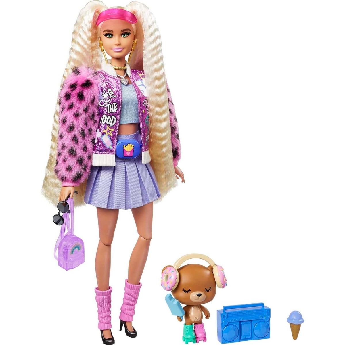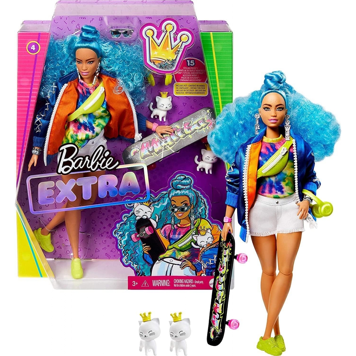Las muñecas Barbie Extra se atreven con la última moda y con los colores más vivos. ¡Y tienen las ideas muy claras! Cada muñeca Barbie tiene su propio estilo exclusivo, muy alegre y ligeramente exagerado. Y sus mascotas cada una de ellas con una diferente. Con las muñecas Barbie Extra, las niñas podrán explorar la autoexpresión a través del estilo y ofrecen una emocionante experiencia de juego de moda y estilo con muñecas articulables. Podrán divertirse con una moda repleta de brillos, ositos de gominola, emoticonos e increíbles peinados, aportando un toque EXTRA dondequiera que vayan.
