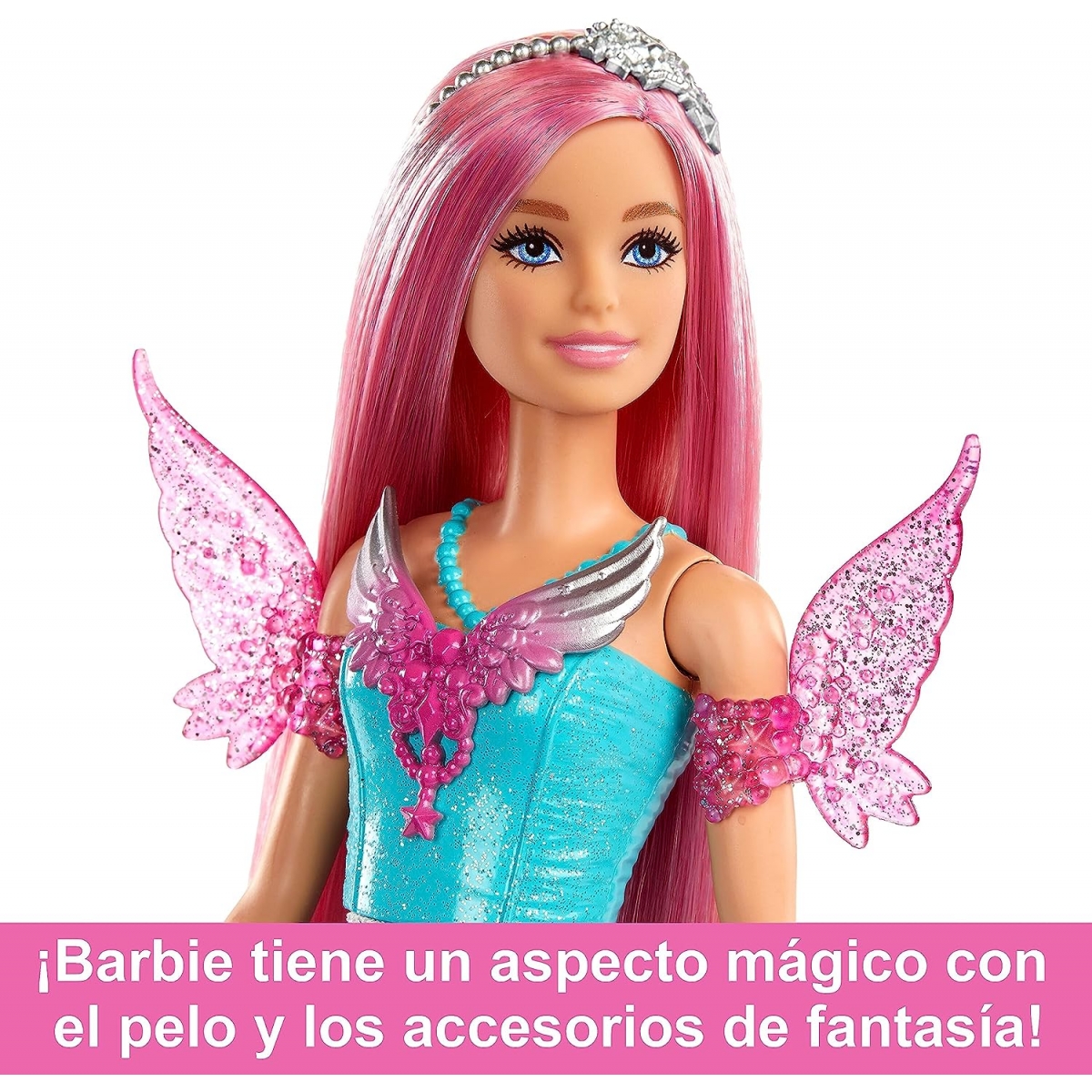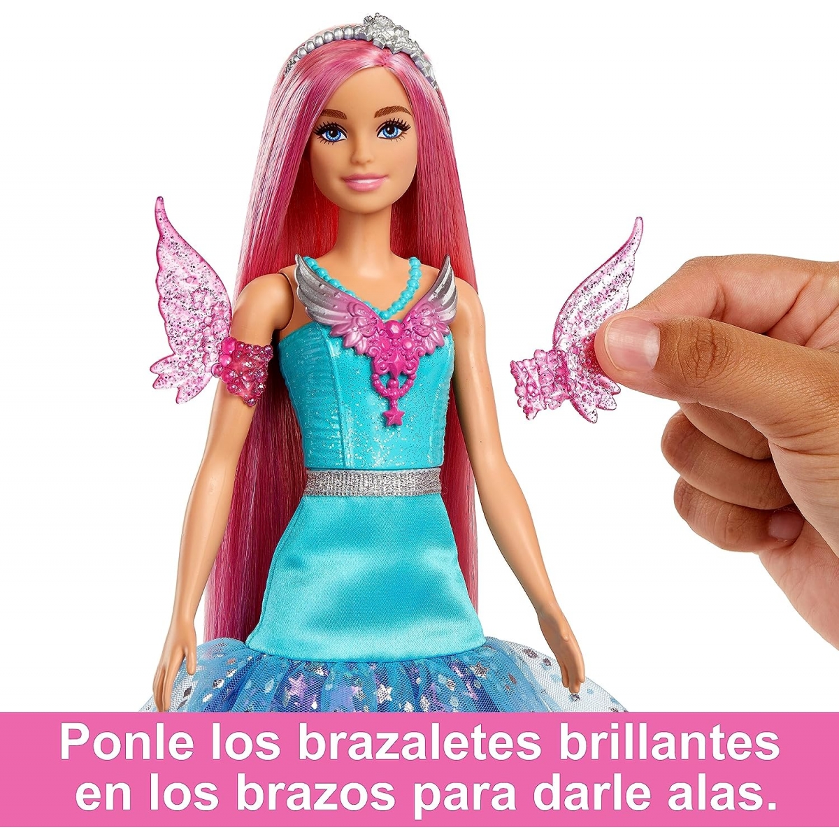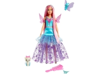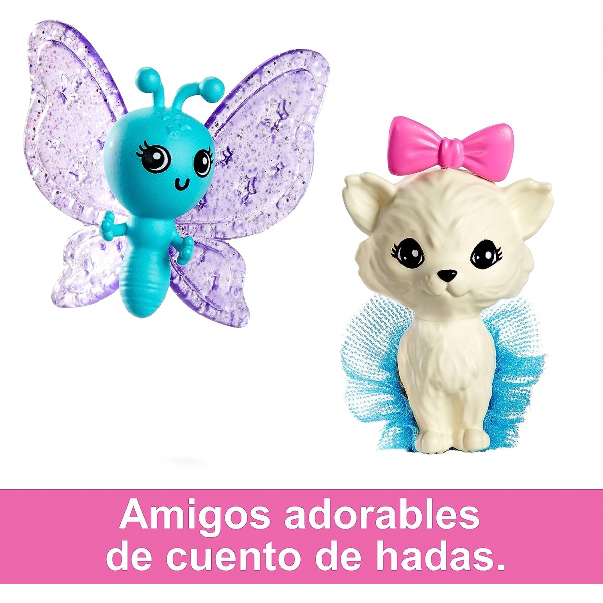 Esta muñeca Barbie derrocha magia con su largo pelo de fantasía y su vestido brillante. La muñeca Barbie Malibu Roberts lleva un conjunto brillante inspirado en la ropa que lleva en Barbie A Touch of Magic. ¡Las dos mascotas y los accesorios de moda incluidos ofrecen más diversión!