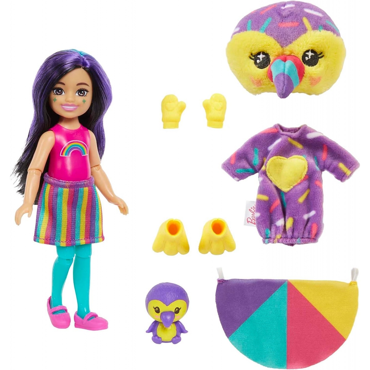 Abrir la caja de las muñecas Barbie Cutie Reveal Chelsea de la serie Animales de la jungla será una experiencia espectacular. ¡Hay siete sorpresas diferentes! Descubre al encantador bebé elefante, al adorable cachorro de tigre, al brillante bebé tucán o al descarado bebé mono y quita el disfraz de peluche para revelar a una muñeca Chelsea articulada. ¿Qué muñeca te tocará? Cada muñeca pequeña incluye formas brillantes en la cara que le aportan un look adorable. ¡Saca tu lado salvaje con más sorpresas, como una falda o una mascota pequeñita a juego con el disfraz de la muñeca! Dale la vuelta a la parte superior del disfraz de peluche para convertirlo en una chaqueta extragrande y usa la cabeza como una cama para mascotas. El encanto será incluso mayor si echas agua caliente a la muñeca y la mascota pequeñita, que cambiarán de color. ¡Con solo echarles agua helada podrás volver a cambiarlas y divertirte sin parar! A niños y niñas les encantará descubrir todas las sorpresas de la serie Barbie Cutie Reveal inspirada en la jungla. Incluye una muñeca vestida con un disfraz de animal y siete sorpresas.
